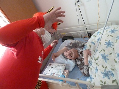 赤鬼のスタッフに恨みでもあるのか、椅子から立ちあがり、思いっきりお腹にボールを投げ当てる利用者の姿も(笑)