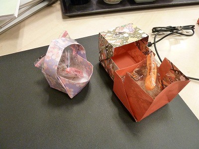 夕食では、スタッフが折り紙で作成された可愛らしい箱に甘納豆を