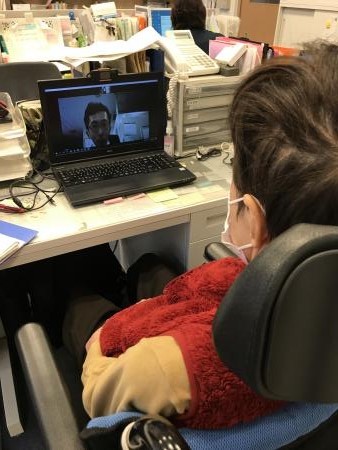 以前、アルファリビング福山多治米で働かれていたスタッフで倉敷に数年前に異動になり会えなくなった入居者様の為にZOOM面会をしていただきました。