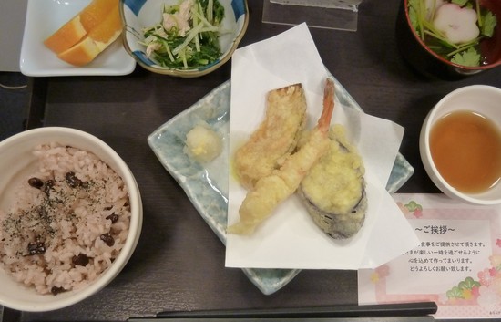 メニューは天ぷらやお赤飯等、おめでたい食べ物が!他にも、今までとは一風変わった食事が提供され、お客様も僕も興味津々