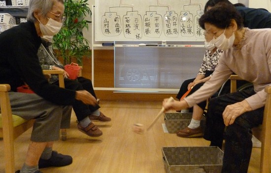 このレクリエーションは反射神経と集中力が必要でとても良い運動になります。
