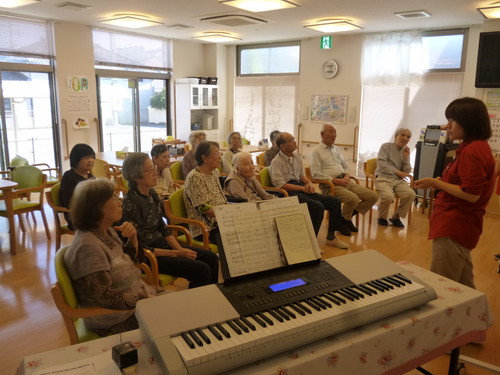 体操や季節の歌、懐かしい童謡、歌謡曲等の歌唱を通してお月見、祭り、東京オリンピックの話しを思い出されながら話して下さいました。