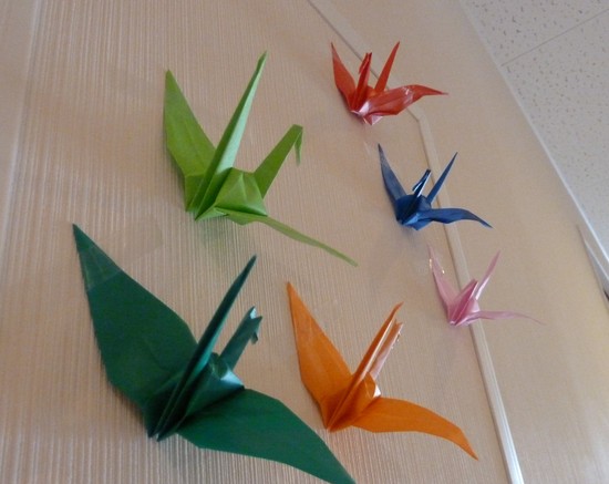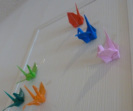 さて、利用者様が折り鶴を折って施設の壁に貼ってくださりました