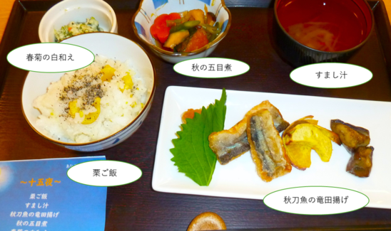 当施設では、栗や秋刀魚など「秋の味覚」たっぷりの特別なお食事をご提供させていただきました