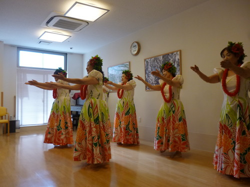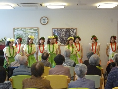 11月の中旬に厨房のおばちゃんの知り合いのフラダンスボランティアの方々が来所してこられ、ダンスを披露してくださいました^^