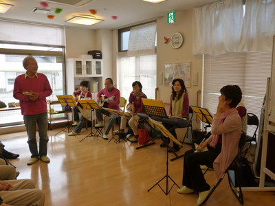 今回、デイサービスに「こんぺいとう倶楽部」という音楽好きな仲間が色々な楽器を手にとり演奏して下さるボランティアグループが来てくださいました。