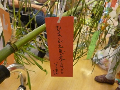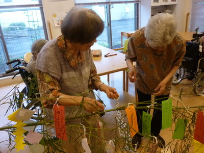 前日にはデイと施設側で短冊に願いごとを書いたり飾りを作ったりと準備をしましたよ。