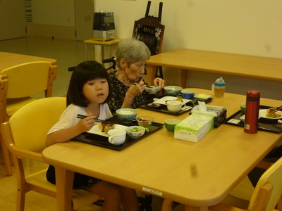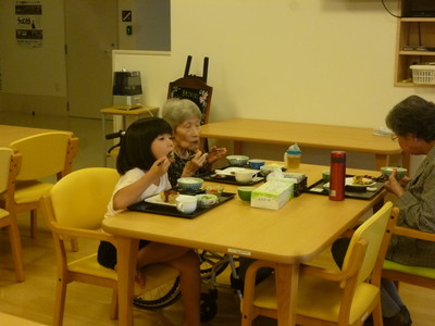 時々、入居者様のひ孫様が来所され一緒に夕食を食べられているシーンをお見かけします