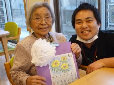 2015年12月23日(水) 1月のカレンダー作り デイサービスでは、各お部屋に置くカレンダーとして1月のカレンダーを作成いたしました。 丁寧に色が塗られておりますね 皆さん、素敵な表情をされております。(@^▽^@)v