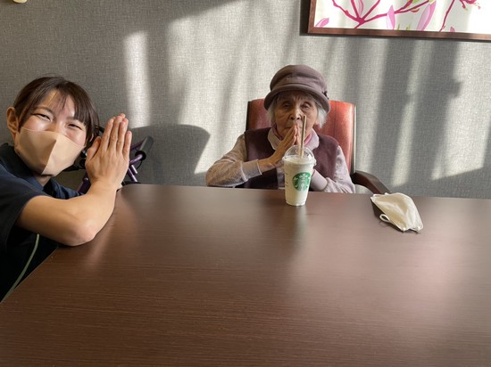 お留守番で待ってくださっていた方々にも、テイクアウトしました。当施設のスタバ部屋(雰囲気が似ている部屋)でコーヒーブレイクです