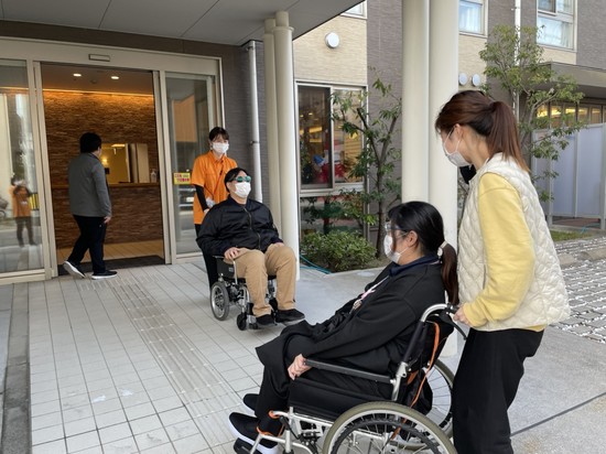 2024年12月05日(木) 【アルファリビング広島段原】体験してみましょう② こんにちはアルファリビング広島段原です 体験してみましょう②次のメンバーに交代です。 いってらっしゃーい 段差のある所は、後ろ向きに ・・・(;^ω^)がんばって・・・ 男性職員に交代しました・・((+_+))(笑)する側とされる側をお互い経験する事は大切なことですね。これからの介護に役立てていきます (*´ω`*)