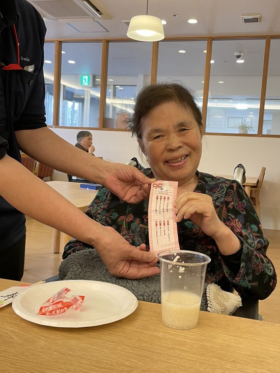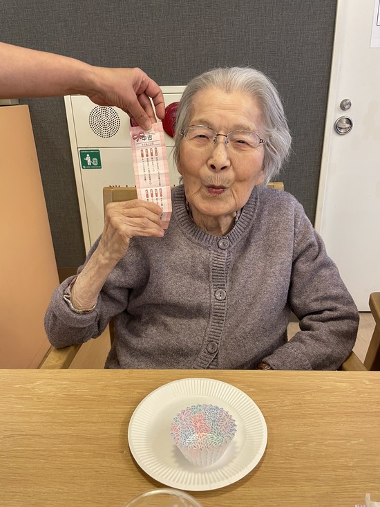 皆さんにスタッフ手作りのおみくじを引いて