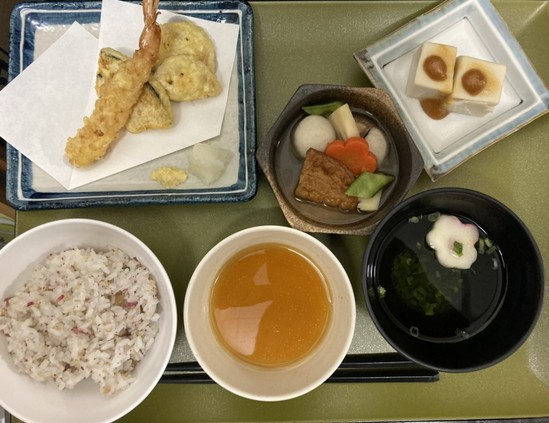 2025年01月19日(日) 【アルファリビング広島段原】お正月のお昼ご飯1月2日・3日 こんにちは アルファリビング広島段原です お正月2日目のお昼ご飯はこちらです ちらし寿司すまし汁 南禅寺蒸し 菜の花の辛し和え おせち盛り合わせ そして、三日目のお昼ご飯はこちら 梅しらすご飯 すまし汁 天ぷら三種盛り 炊き合わせ ごま豆腐 三日間のお正月料理はどれも美味しくいただきました。次のイベント食は なんとぶりの解体ショーを楽しんでいただき、その後は、 海鮮丼 をご提供です またこちらでご紹介させていただきますので おたのしみに!!!