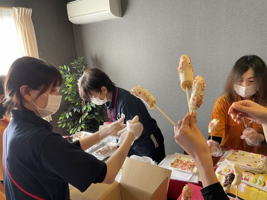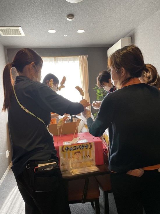 そして、そのお茶会の為にスタッフ総出でチョコバナナ を作りました