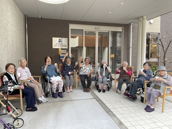 玄関でお茶会です
