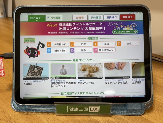2025年10月26日(日) 【アルファリビング広島段原】こんな感じに置きました こんにちは アルファリビング広島段原です 先日、施設にやってきた健康王国DXをココに置きました いい棚ですねそして、いい音がみなさんに届く様に、少し上に上げたので期待できますね派手派手な中身は どんな感じでしょう?↑こんな感じです。 色んなコンテンツがあって、ワクワクしてきます。 猫好きな私は、かわいい子猫が 気になります