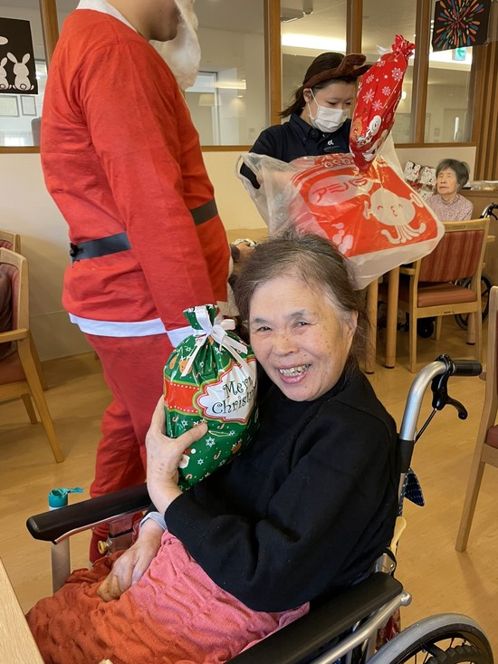 2026年01月07日(水) 【アルファリビング広島段原】Xmasパーティー2025④ Xmasパーティー④Xmasパーティーのラストは恒例のこの方の登場です 世界的な有名人 サンタクロースさん お一人お一人に声をかけて、いろんなプレゼントを渡してくれました。 皆さんの笑顔がとても素敵ですねサンタさん、今年も笑顔をありがとう 来年も来てね(*^-^*)