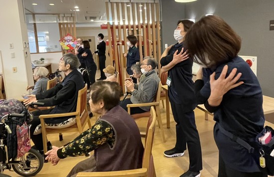 2026年03月27日(金) 【アルファリビング広島段原】初舞台!(^^)! こんにちは アルファリビング広島段原です 今日のレクはミャンマーちゃん3人組の初舞台? でした。先輩の手助けもあって 皆さんの前で緊張しながら、一緒に歌と体操をしました皆さんも応援してくださってますみんなでしっかりと体操ができました 初舞台は大成功 お疲れさまでした(^O^)/