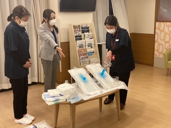 パッドなども実物を手にしたり、紙パンツを履いたり、オムツを自分に