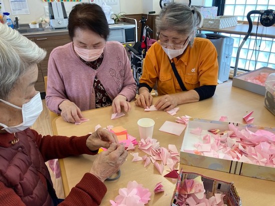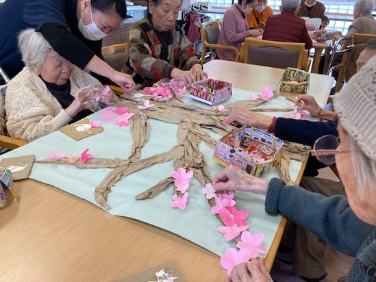 この日は桜の木に花を咲かせるレクを行いました(^^♪