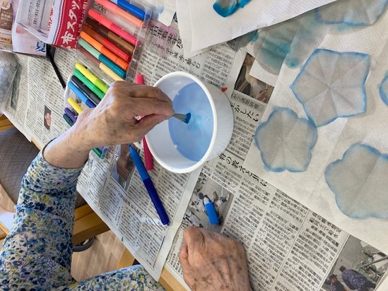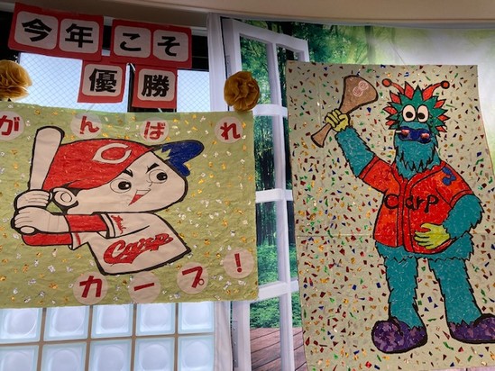 朝顔の花びらつくりの創作活動とカープの応援の二本立て♬