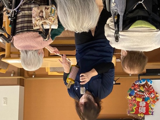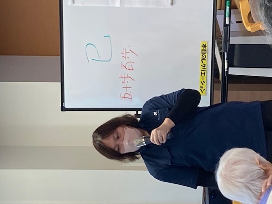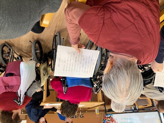 職員お手製の歌詞カードを見ながら皆様で歌いました♪