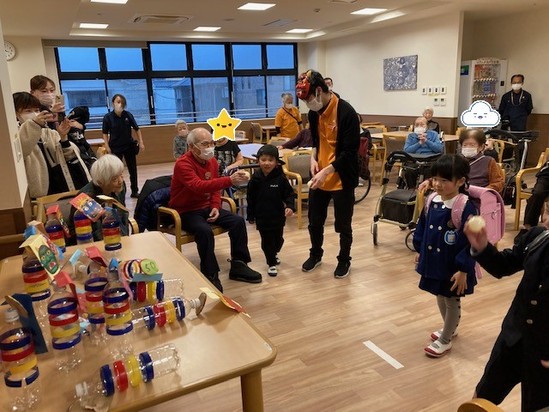 ご入居者様もかわいいお子様たちの姿を見て