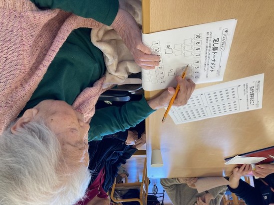 2025年05月10日(土) 天気がいい日はうれしいですね♪ こんにちは!古江駅前です(*'ω'*)昨日の大雨とうってかわって本日はいいお天気♪本日の古江駅前はカープ観戦と脳トレの二本立てです! てきぱき素早く解いておられました! いかがでしょうか? ちょっと難しい問題みたいです♪ 職員と協同で問題に取り組みました♪ これはなかなか・・難しい(・・? (*'ω'*)本日は母の日前日ということもあり、ご面会が多かったです!お孫様を連れてご面会にこられたご家族様も♪皆様の笑顔が印象的でした!