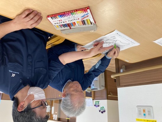 2025年05月22日(木) 6月の準備完了♪ こんにちは!古江駅前です(*'ω'*)蒸し暑い日が続きますね・・・今年の夏も暑そうです・・体調管理には気を付けたいですね!本日は6月のカレンダー作成(^^♪ あじさいにメロンに・・・いろいろな絵柄があって迷いますね♪ あじさいが人気です! メロンを選ばれたみたいです! 色見本を見て・・・ざくろを選ばれました! 職員と共同作業です! メロンがおいしそうです! 色合いが素敵です♡ 6月を迎える準備完了です♡本日もお疲れさまでした(^^)/