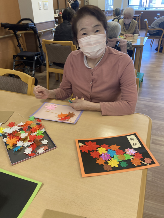 今日は、紅葉の葉の飾りつけをしました。