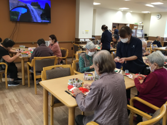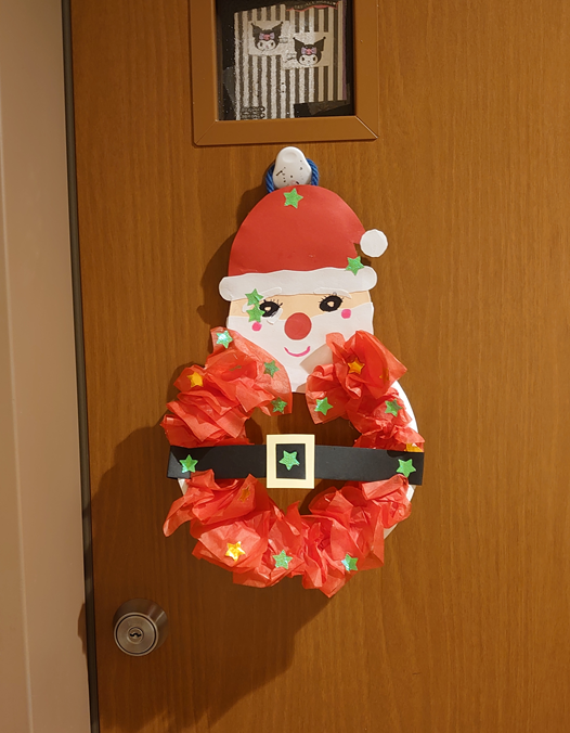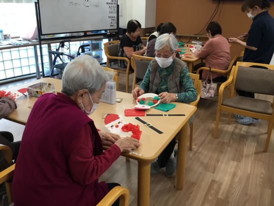 2025年12月02日(火) サンタの飾り作り こんにちは、古江駅前です 本日のレクリエーションは、「サンタの飾り作り」です 皆さま、一生懸命に作って頂きました 完成した飾りは、部屋のドアに飾って頂いています。 皆さま、お疲れさまでした。