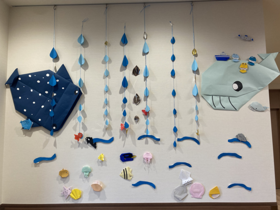 2025年12月06日(土) 7月振り返り こんにちは、古江駅前です 今年の7月8月は、ブログ担当が不在の為、更新が滞っていました。 撮影は行われていたので、数回に分けてお送りします。 7月7日 特別食の冷やし中華。 7月14日 職員作、折り紙水族館。 7月31日 ひまわりの壁紙 次回は8月分です