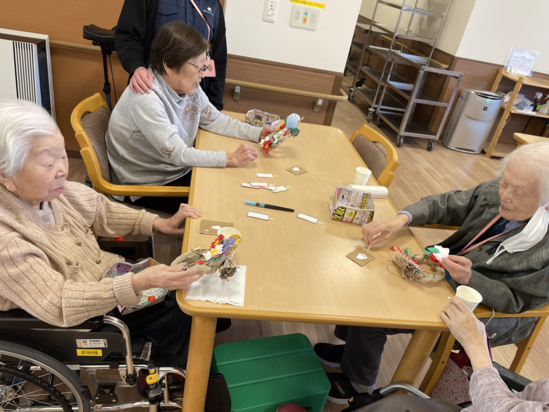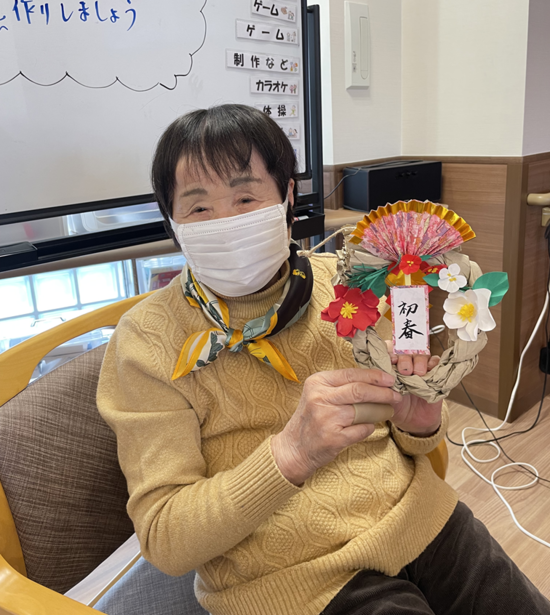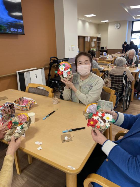 本日のレクリエーションは、正月しめ縄飾りを作りました。