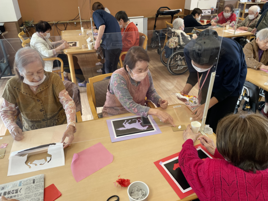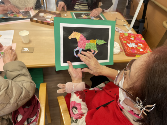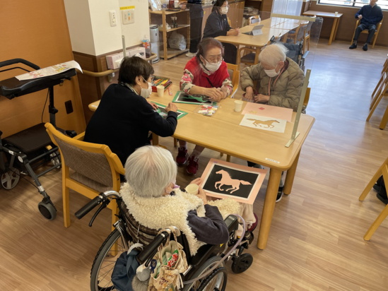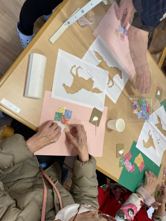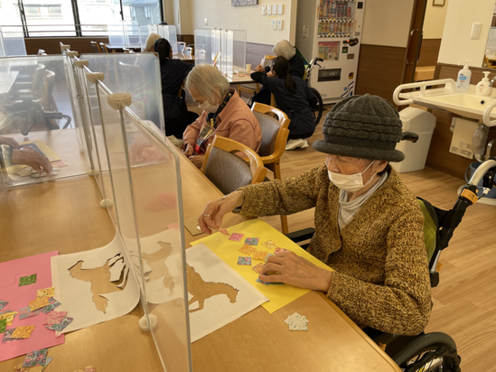 本日のレクリエーションは、馬の切り絵です。