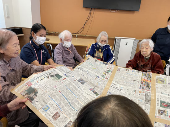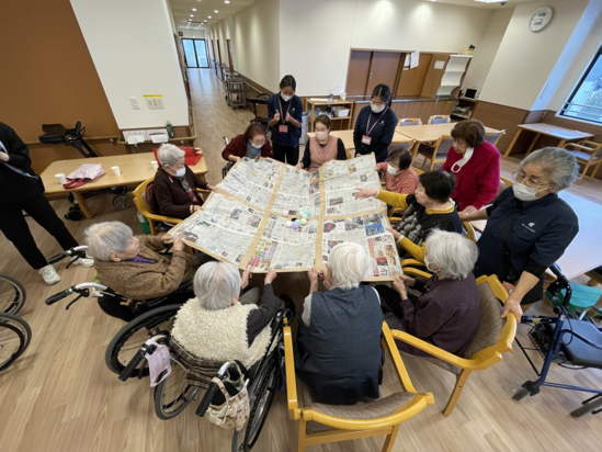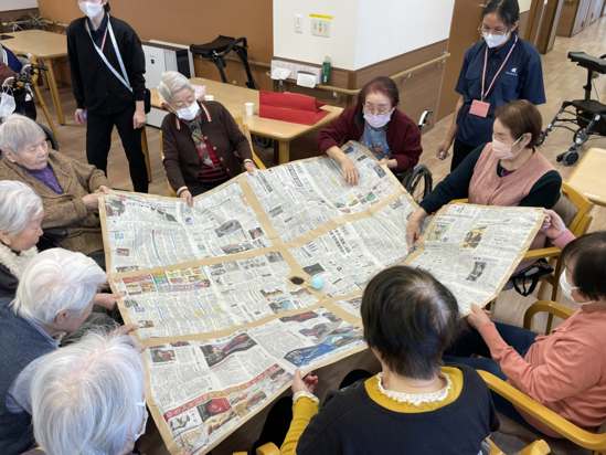 新聞紙に空いた穴に玉を落とすまでの時間を争います。