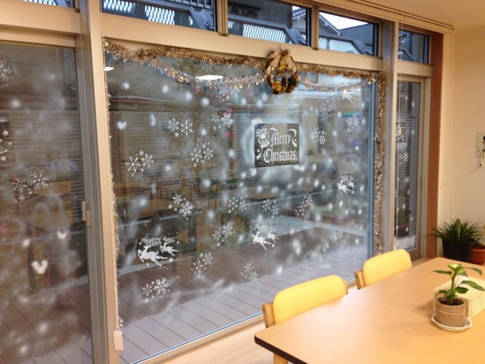 2016年12月13日(火) 完成クリスマス飾り こんばんは やっと・・・・ レストランの飾りつけが終わりました。 職員がみんなで協力して完成させました。 雪ダルマがかわいいですね~ 飾りつけが完成してからは入居者様は窓を見ながら食事されてます・・・・(笑)