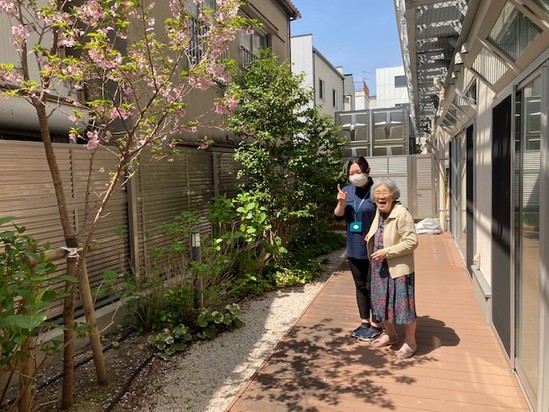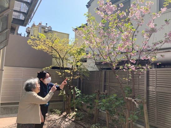 I様と職員さんの笑顔も桜のように可愛らしいです