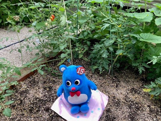 2022年07月27日(水) あーなちゃんと畑 こんにちは 天気がいい日が続きますね 今回もあーなちゃんと一緒に外に出ました きゅうりの花が咲きました このまま順調に育って欲しいですね トマトが赤くなってきました 2回目の収穫も楽しみです