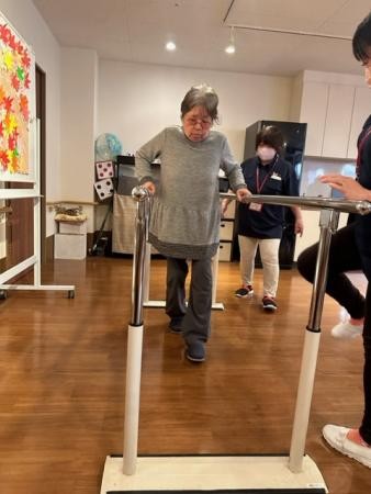 こちらは平行棒を使っての歩行訓練。頑張ってます