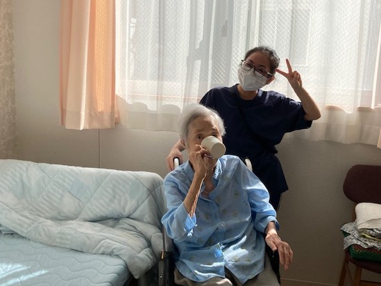 2025年10月26日(日) 機械浴入浴 こんにちは!アルファリビング広島観音本町です今日は機械浴のご紹介です!館内には、一般浴と介護浴とこの大きな浴室浴槽があり、入居者様が安心安全で心地よくご入浴できるようご準備しています さて、今日もこれを飲んで入浴だ(^▽^)/とご入浴前の栄養補給されています(o^―^o) ご入浴はその日その時のご状態が一番わかりやすい、とっても大切な時間です。 今日も楽しくご入浴いってらっしゃいませ♪