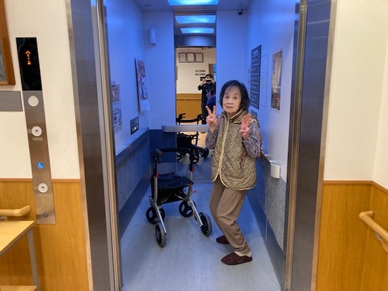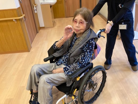 2025年11月18日(火) デイケアからのお帰りなさいませ 皆様こんにちは 「寒い寒い」と声が聞こえてきました。 皆様デイケアからお帰りになりました。 「お帰りなさいませ」とお声がけすると「ただいまー」と元気に挨拶してくださいます。皆様それぞれ素敵なポーズをしてくださいました