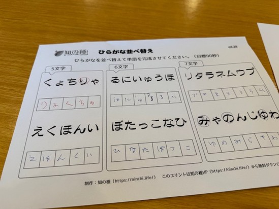 2026年01月11日(日) 間違えにもほっこり♪ こんにちはアルファリビング観音本町です 先日談話スペースで看護師さんとO様がなにやら真剣に問題を解いておられました ”ひらがなの順番を入れ替えて正しい言葉にする”といった問題を解いておられました えくほんい…… えほんくい…… 「絵本食い?!?!?!」 正解は「保育園(ほいくえん)」 ですが… 気づいた時に大笑い((´∀`))ケラケラ その解答もあったか!!と驚きました こんなほっこりな日常も大切にしていきたいですね