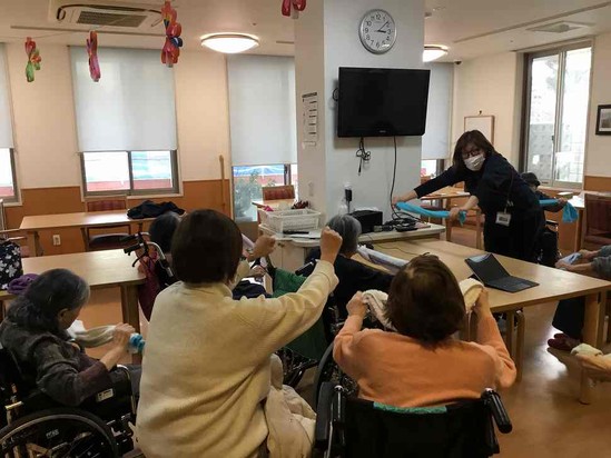 2025年02月21日(金) ある日の午後の様子 こんにちは!アルファリビング広島中広です!日常の様子をご紹介しようと思います。中広では積極的に体を動かすことを行っています。 タオルを使ったり、ボールを使ったりと様々です。 この画像はマツケンサンバを流しながらリズムに合わせて体を動かしています。 入居者様の御家族も交えて行う日もあります。 面会に来られた際お時間がありましたら是非参加お待ちしております!!