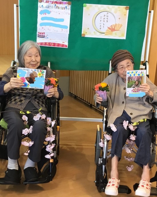 2025年04月22日(火) 4月お誕生日会 こんにちはアルファリビング広島中広です。4月 のお誕生日会の様子です。今月は2名の方をお祝いさせて頂きました。おめでとうございます!今月は中村施設長も参加されお花を渡されてます。 プレゼントのお花と一緒に 来月もお楽しみに