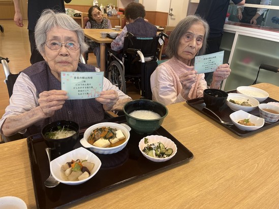 2025年06月29日(日) イベント食 こんにちはアルファリビング広島中広です イベント食のご様子です メニューは奈良の郷土料理です 食事中に職員と「奈良に行った事ありますか?」などの会話を楽しみました