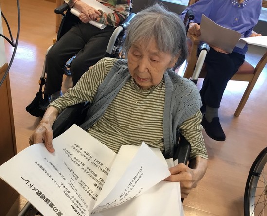 2025年08月07日(木) 七夕ピアノコンサート こんにちはアルファリビング広島中広です 7月に開催されました、七夕会のご様子です。 河合音楽教室の講師の方によるピアノ演奏です。 ピアノに合わせて、入居者様は懐かしい歌を歌われ楽しまれました真剣に楽譜をみて口ずさんでいます 職員と一緒に