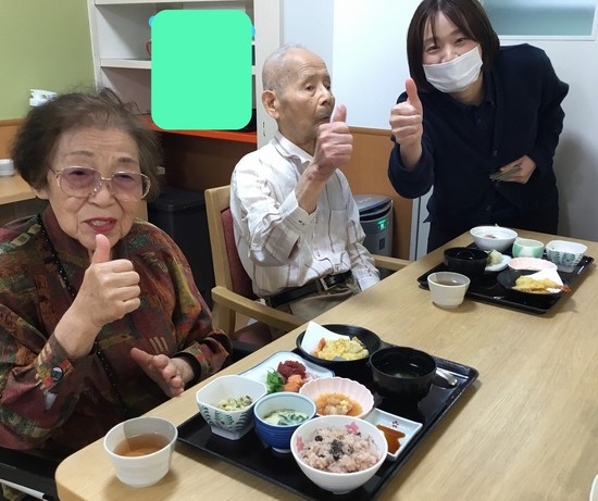 2025年11月30日(日) 中広14周年イベント食 こんにちはアルファリビング広島中広です中広14周年祭にて昼食は豪華なイベント食となりました 赤飯・茶碗蒸し・お刺身・天ぷらなど皆様がお好きな物ばかりです 最高だねと思わず一緒にグッドサイン 何から食べようか迷い中です イベント食は月2回~3回定期的に行っています。 食事を楽しんで元気に過ごして頂きたいです