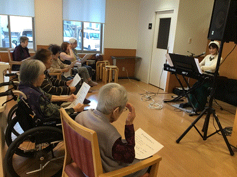 2025年12月24日(水) 音楽会 こんにちは、アルファリビング広島中広です。 カワイ音楽教室の方をお招きして、音楽会を開催いたしました 歌詞カードも教室の方がご準備くださっています。席に着いた方からお渡し。 サンタの帽子が可愛いですね。ピアノにあわせてクリスマスソングを皆で歌いました お部屋で過ごすことが多いご入居者様にも音楽を楽しんでいただくことができました。 なんと最後は職員の声掛けで、ご入居者様皆様とアンコール!アンコール!アンコール! と大きな声で呼びかけて、時間が過ぎていたものの、そのお声に講師の方が応えてくださいました。 皆様、喜んでいました。ありがとうございました。m(_ _)m