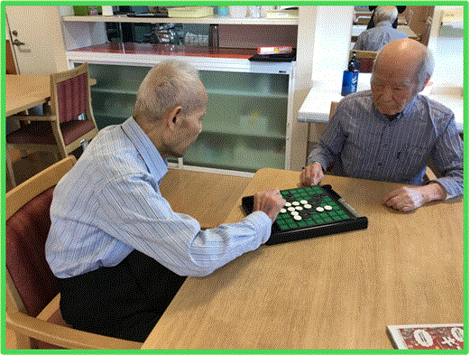 2026年01月10日(土) 黒白 こんにちは、アルファリビング広島中広です。 身体を動かしてもらうレクが多いですが今回は頭を使っていただきました。 タイトルにもありますが、オセロです。 うんうん、なかなかの接戦です。 角っこを取られると一気に形勢逆転しちゃうので昔も今もドキドキのゲームです。 すごろくなど、手づくりしても面白いかもしれないですね(^^)