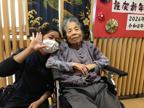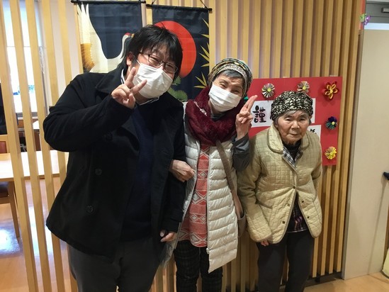 2026年01月14日(水) 謹賀新年 写真撮影 こんにちはアルファリビング広島中広です 1階食堂に、お正月の飾りつけを行いました せっかくですので、ご入居者様・ご家族様・職員で写真撮影をしました。 「一緒に撮りましょう!」とご家族様の希望で施設長と一緒にお正月に記念に残る素敵な写真が出来ました